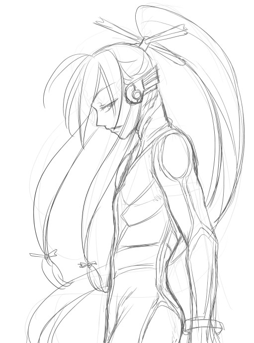 と、例の漫画家のラフ画を参考に、ガザガザ描いてみた次第です。